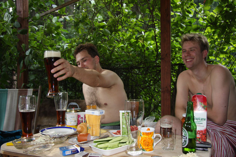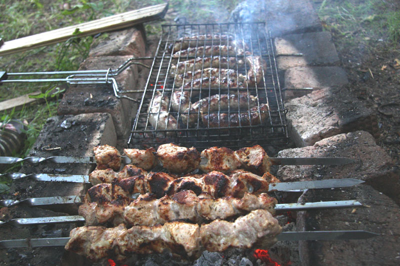 сидим, разминаемся колбасками на гриле с водочкой. :)